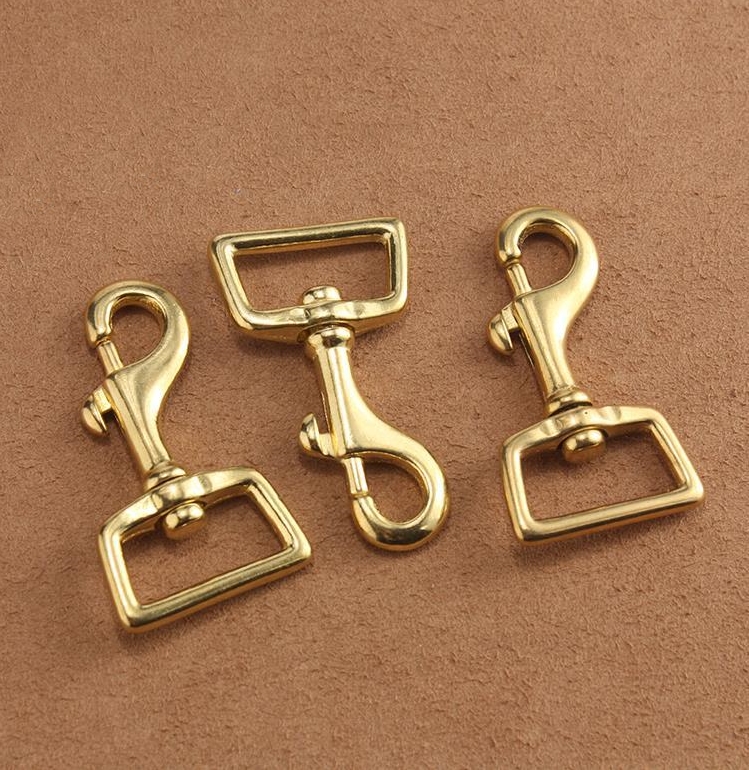 Карабины из латуни применяют в изготовлении ремней для сумок, подвесов, подводков для собак, ключниц и других изделий.