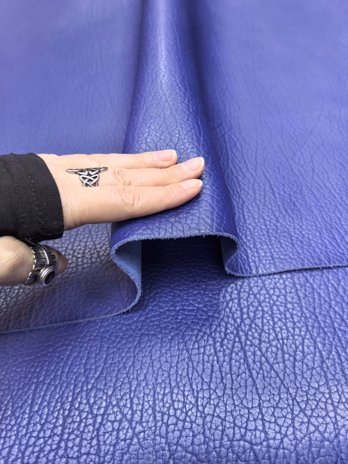 Кожа отличается характерной «живой» поверхностью с мягкими неровностями (барабанная разбивка). За счет толщины 1.6–1.8 мм и средней плотности она менее капризна в работе и подходит для изделий с повышенной нагрузкой. Прекрасный выбор для дизайнерских проектов, где нужен «итальянский» характер материала.