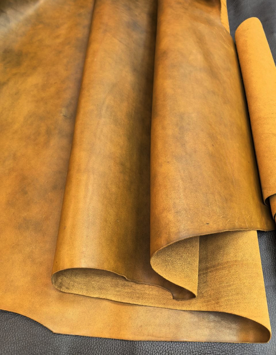 Натуральная кожа юфть является одним из самых прочных видов кожи. Применяется для изготовления обуви, кошельков, картхолдеров, сумок, рюкзаков, обложек, ремней, сбруи и тд.